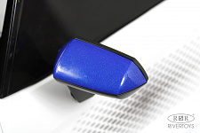 Двери открываются вверх на доводчиках, а принцип чемодана позволяет легко перемещать автомобиль благодаря выдвижной ручке и колёсикам.