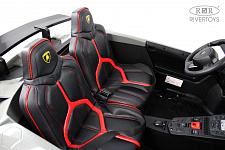 Перед вами один из самых мощных детских электромобилей, представляющий собой лицензионную копию Lamborghini Aventador SV. Транспорт рассчитан на 2-х пассажиров. Для них предусмотрены 2 сиденья, обтянутых кожей алькантарой, каждое с индивидуальной регулировкой. Есть 2 отдельных полосных ремня безопасности, фиксируемых сбоку.