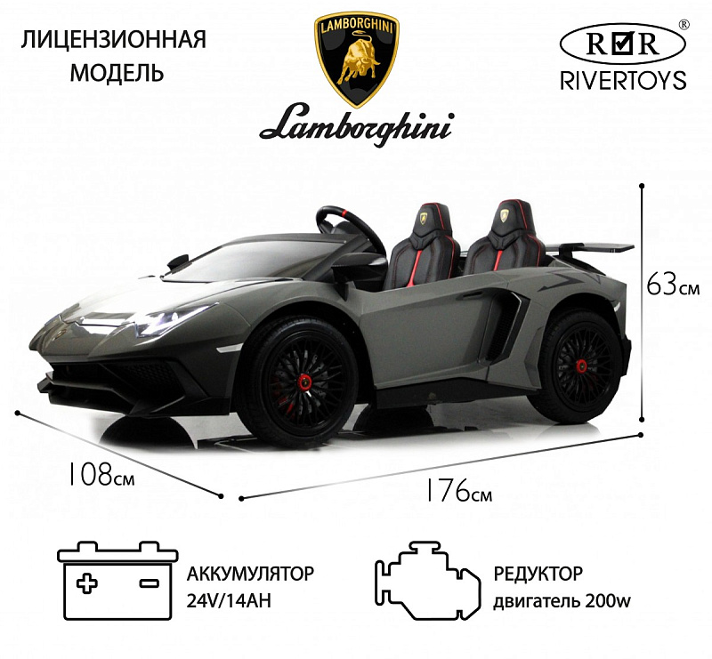 Детский электромобиль RiverToys Lamborghini Aventador SV M777MM серый