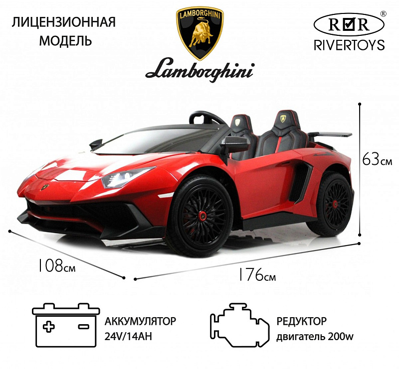 Детский электромобиль RiverToys Lamborghini Aventador SV M777MM красныйНет оценокХарактеристики