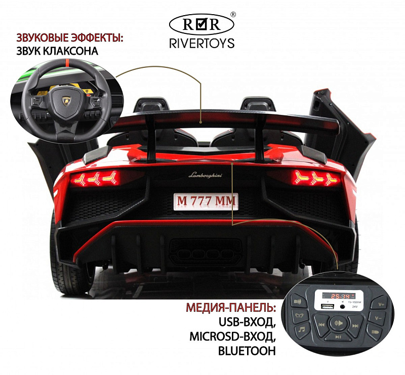 Детский электромобиль RiverToys Lamborghini Aventador SV M777MM красный
