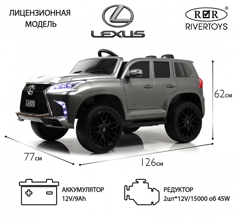 Детский электромобиль RiverToys Lexus 570 E555EE серый глянец