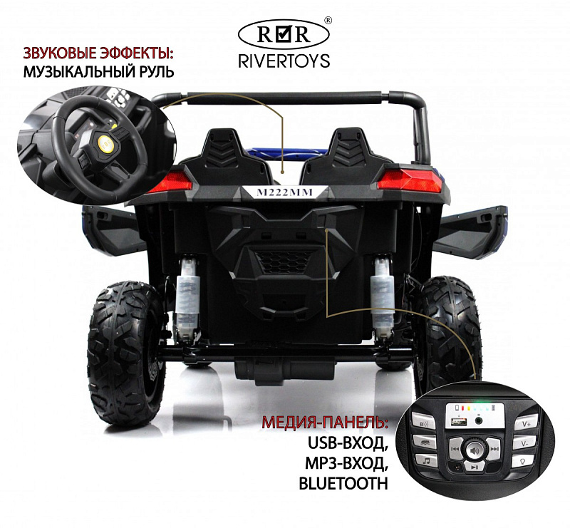 Невероятный, мощный, дерзкий, не имеющий аналогов на рынке, детский электромобиль Buggy M222MM 24V!!! Такой детской машинки Вы еще не встречали. Вам наскучили однообразные детские кары, с минимальной скоростью, Ваш малыш активный и уже управляется с любым видом транспорта? Тогда эта модель точно для Вас! Buggy M222MM это настоящий Багги среди детских игрушек! Модель развивает скорость до 15 км/ч, едет практически по любой поверхности или препятствиям. Так же оснащен мощным двигателем и аккумулятором 24v. Такой автомобиль отлично подойдет одному или двум активным и самостоятельным любителями техники для катания. Ваш малыш будет в восторге от такого транспорта.
