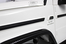 - Особенности: открывается капот (место для хранения), коврик AMG, расширенные колёсные арки из карбона, светодиодная «люстра» на лобовом стекле, противоударный брус под задним бампером.