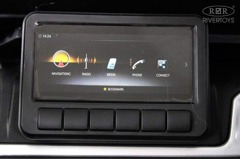 - Медиа-панель: поддерживает подключение через USB и AUX, имеет индикатор заряда батареи, Bluetooth, радио и регулировку громкости.