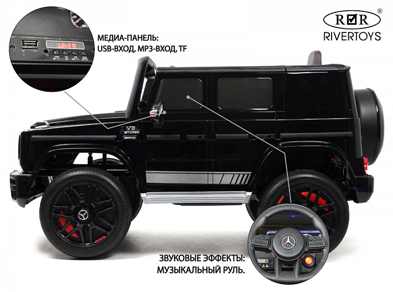 Детский электромобиль RiverToys Mercedes-AMG G63 4WD K999KK черный глянец