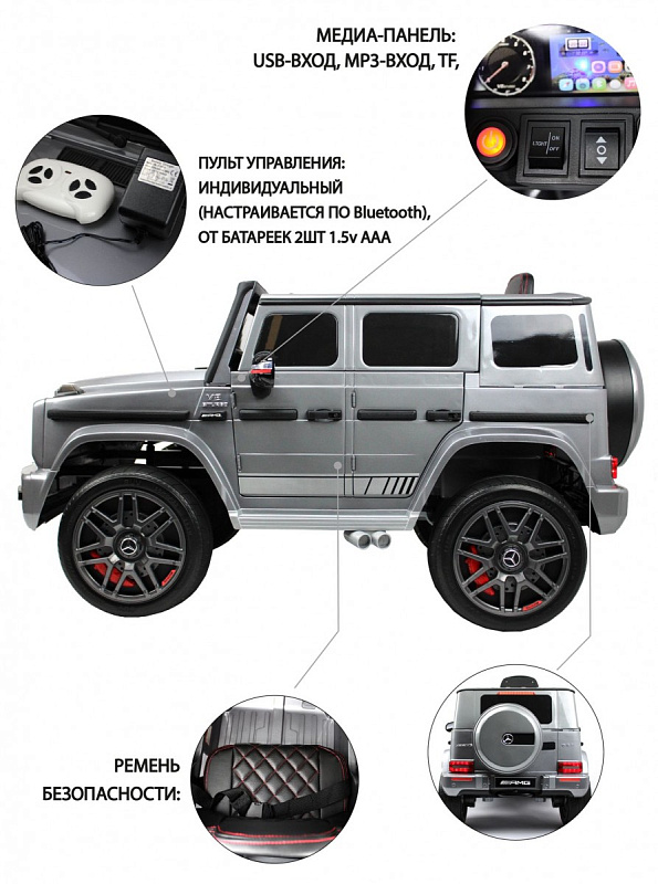 Детский электромобиль RiverToys Mercedes-AMG G63 4WD K999KK серый глянец