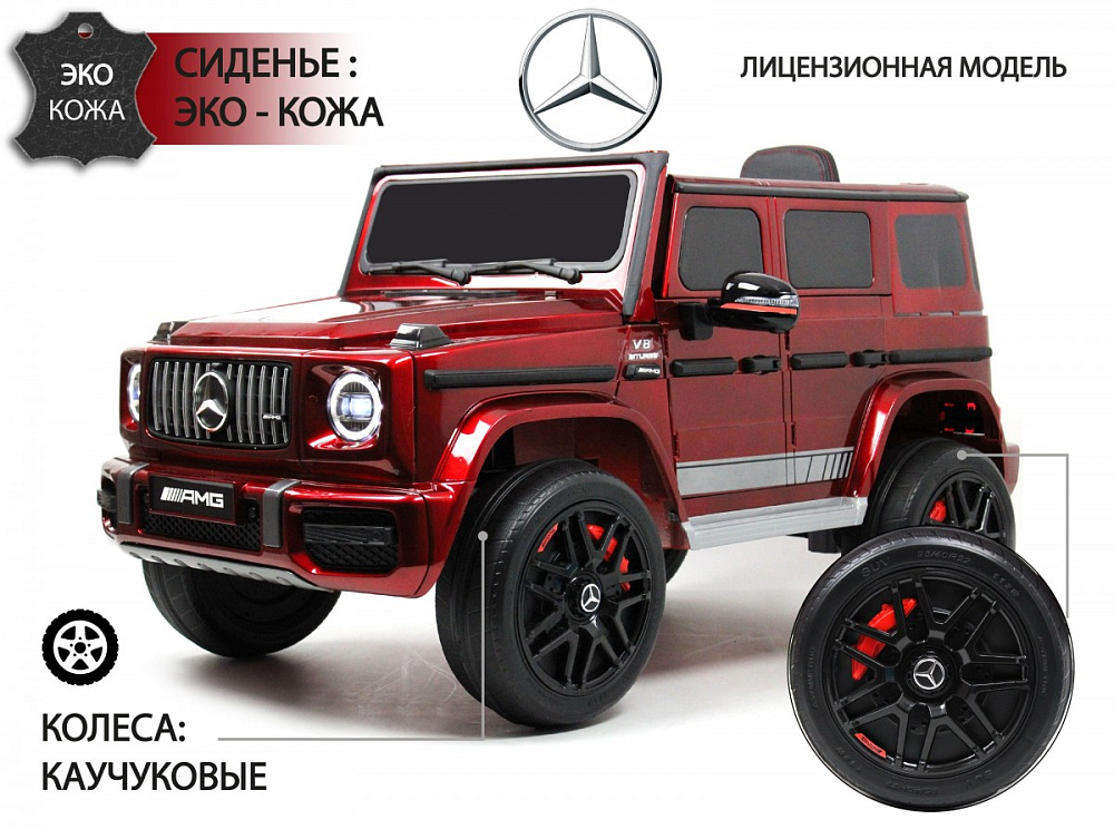 Детский электромобиль RiverToys Mercedes-AMG G63 4WD K999KK вишневый глянец