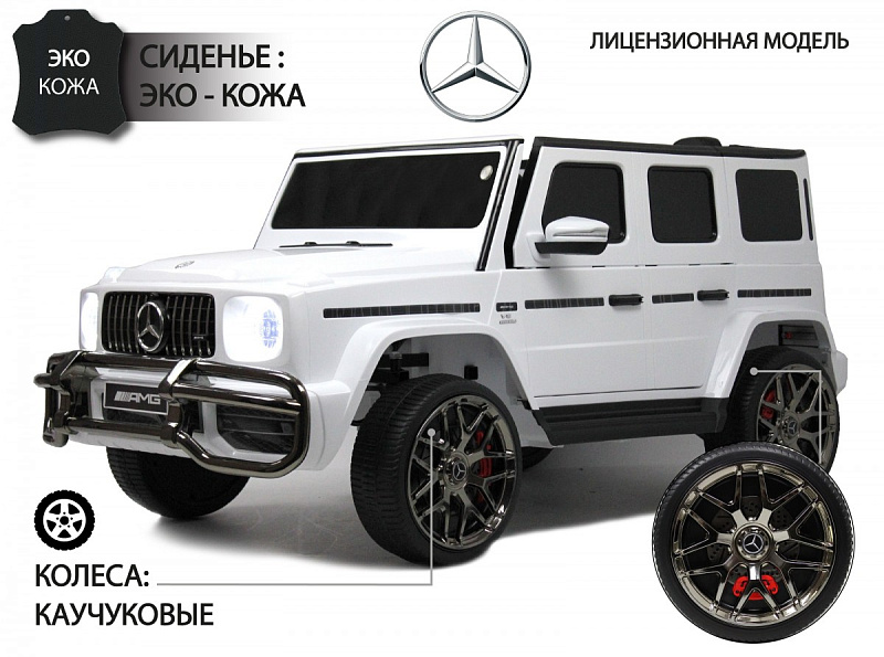 Детский электромобиль Mercedes-Benz AMG G63 настоящий стильный габаритный внедорожник для любителей классического дизайна этой марки. Стильный дизайн новинки не оставит равнодушными окружающих. Полноценно двухместное кресло позволит разместиться с комфортом одному или двум малышам. Так же в такую модель без проблем сядет и ребенок постарше, до 7-8 лет. Каучуковые колеса, амортизация и кожаное кресло добавят комфорта поездке по неровностям. Для контроля движения самых маленьких водителей есть родительский пульт. Музыка и подсветка станут приятным дополнением к отличному дизайну модели. Так же в конструкции предусмотрена ручка - чемодан для удобства транспортировки.