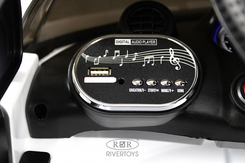 Этот электромобиль оснащён световыми и звуковыми эффектами, которые сделают поездку ещё более увлекательной. Передние и задние фары включаются отдельной кнопкой на панели, а музыкальный руль издаёт звук клаксона и проигрывает заводские мелодии.