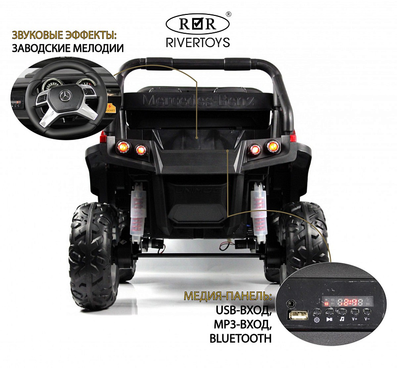 Детский электромобиль RiverToys Mercedes-Benz Unimog Concept P555BP Черный глянецНет оценокХарактеристики