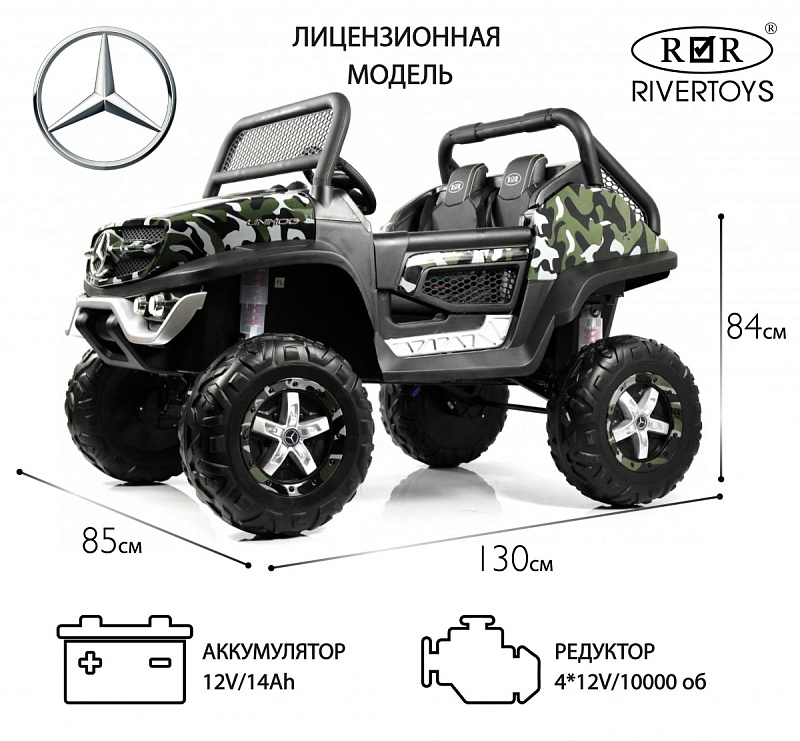 Детский электромобиль RiverToys Mercedes-Benz Unimog Concept P555BP КамуфляжНет оценокХарактеристики