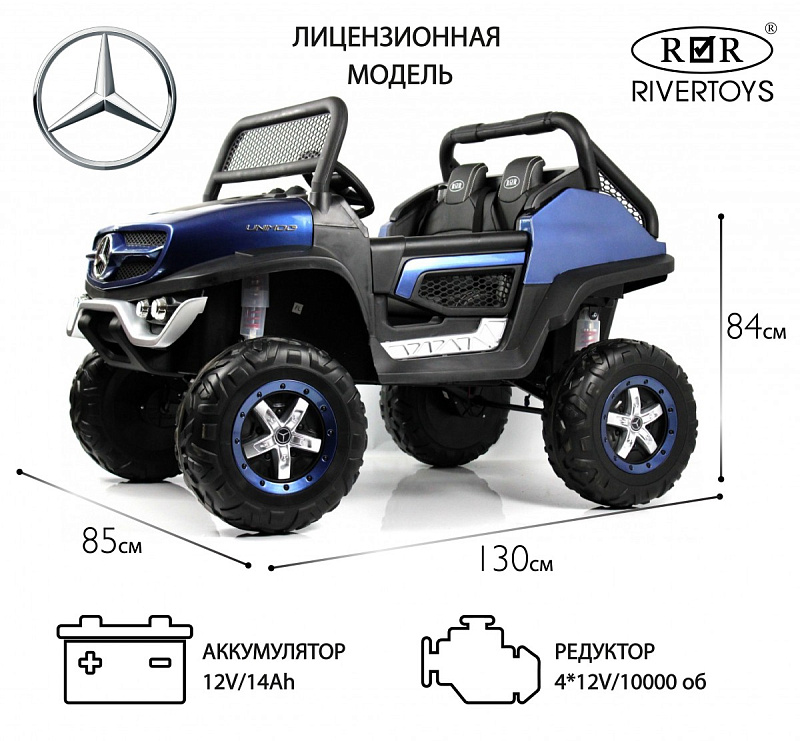 Детский электромобиль RiverToys Mercedes-Benz Unimog Concept P555BP Синий глянецНет оценокХарактеристики
