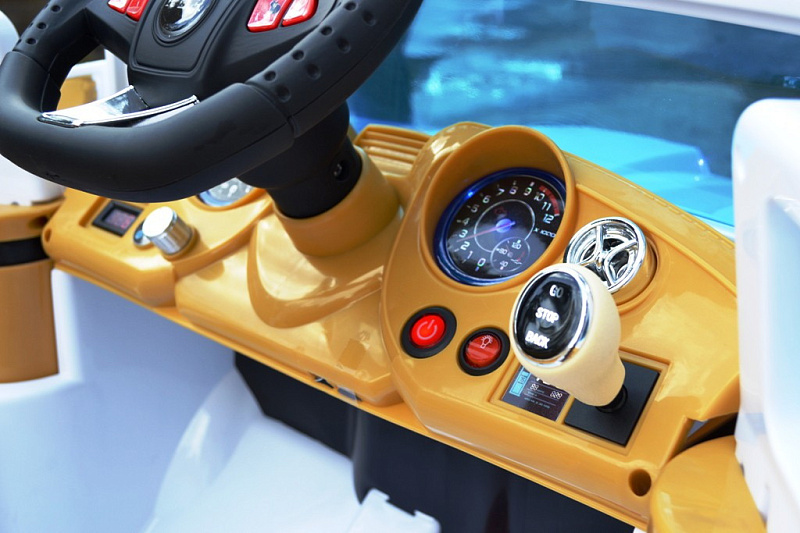 - Машина способна подавать звуковые и световые эффекты, может разгонятся до 6 км/час, имеет 2 скорости вперед и еще одну реверсную.