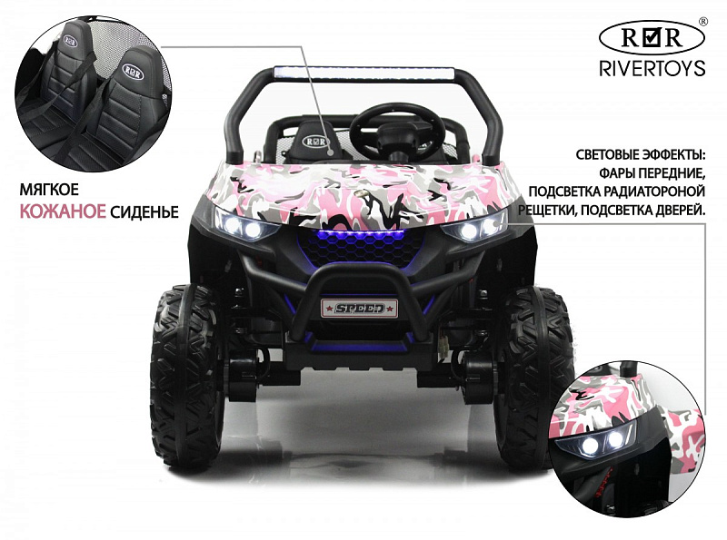 Детский электромобиль RiverToys T777TT 4WD розовый камуфляж