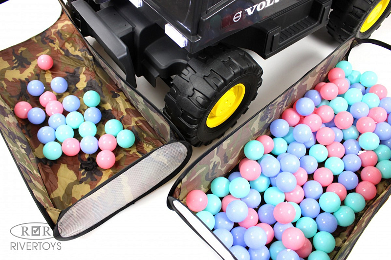В комплекте с электромобилем идут коробки с шариками и лопата, что позволяет разнообразить игру и сделать ее еще более интересной и увлекательной.