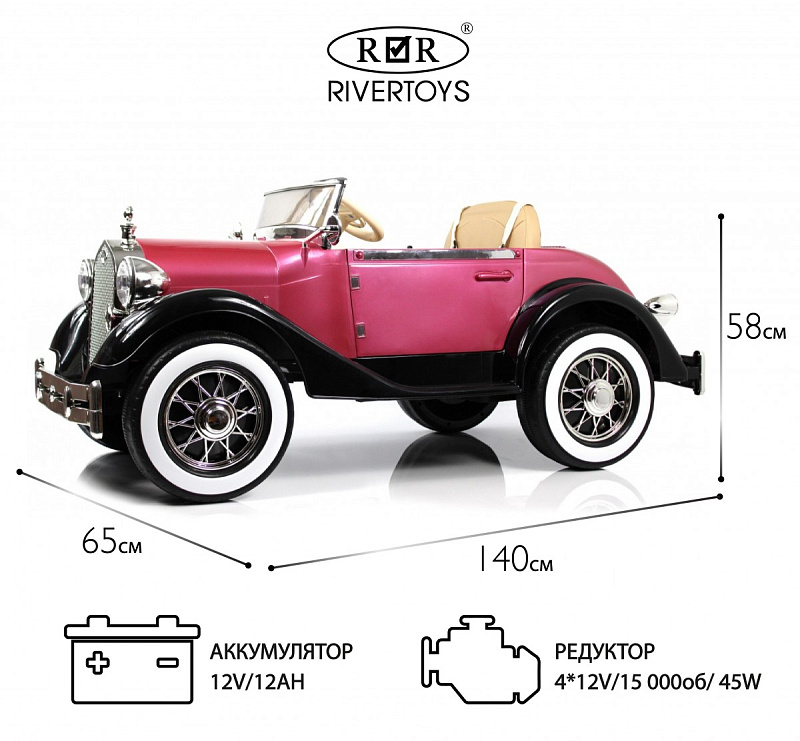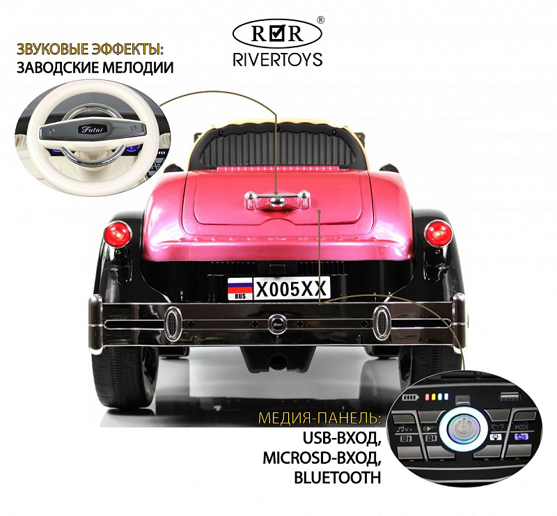 Ретро электромобиль X005XX качественный и стильный детский ретрокар. Модель имеет стильный запоминающийся кузов из ударопрочного пластика. Просторный салон так же отличается неповторимым дизайном и уникальными расцветками. Детская машинка X005XX оборудована полным приводом и мощным аккумулятором. Уникальной особенностью так же является дополнительная педаль газа и дополнительное посадочное место в районе багажника для второго пассажира. Такое устройство позволит кататься вместе двум малышам одновременно. Не смотря на ретро дизайн модель имеет все современные системы безопасности и комфорта детской игрушки. Ремень безопасности, пульт, музыка и подсветка дополняют X005XX.