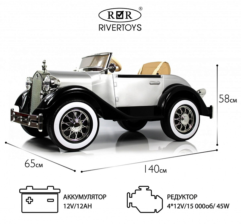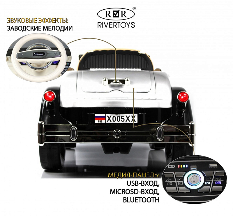 Ретро электромобиль X005XX качественный и стильный детский ретрокар. Модель имеет стильный запоминающийся кузов из ударопрочного пластика. Просторный салон так же отличается неповторимым дизайном и уникальными расцветками. Детская машинка X005XX оборудована полным приводом и мощным аккумулятором. Уникальной особенностью так же является дополнительная педаль газа и дополнительное посадочное место в районе багажника для второго пассажира. Такое устройство позволит кататься вместе двум малышам одновременно. Не смотря на ретро дизайн модель имеет все современные системы безопасности и комфорта детской игрушки. Ремень безопасности, пульт, музыка и подсветка дополняют X005XX.