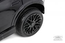 Задние амортизаторы обеспечивают комфортное вождение даже на неровных дорогах. Колеса изготовлены из каучука, обеспечивая хорошее сцепление и плавное движение. Двери в салон открываются. Это позволяет легко садиться и выходить из автомобиля. Электромобиль имеет функцию качалки для дополнительного развлечения маленького водителя.