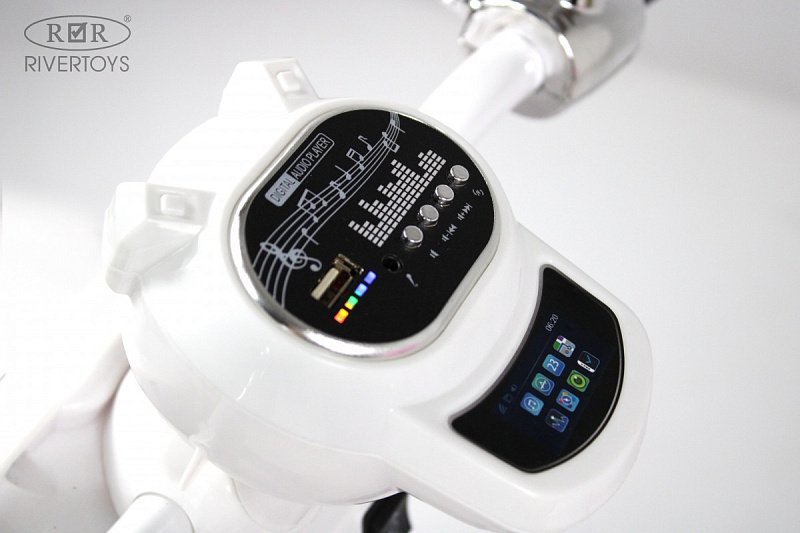 Медиа-панель с USB-входом, AUX-входом и Bluetooth позволит вашему ребёнку наслаждаться любимыми мелодиями и радиостанциями во время прогулки. Индикатор заряда батареи всегда подскажет, когда нужно подзарядить аккумулятор.