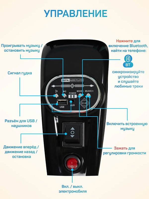 Детский электромобиль SR9909 выполнен в виде мотоцикла. Он подарит множество радостных моментов и поможет развить координацию и уверенность в себе.