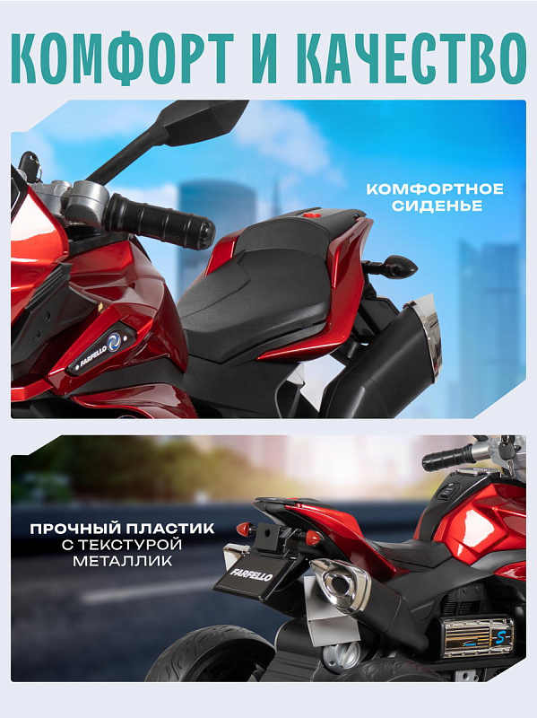 Детский электромобиль трицикл Farfello TR245 красный металликНет оценокХарактеристики