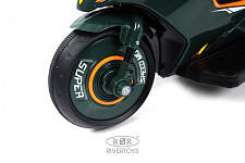 В данном мотоцикле отсутствует пульт управления. Движение осуществляется нажатием на педаль газа, что способствует развитию моторики и навыков управления у вашего ребенка. Электробайк оснащен пластиковыми колесами. Максимальная скорость составляет около 4 км/ч. Предусмотрена одна скорость вперед и одна назад.