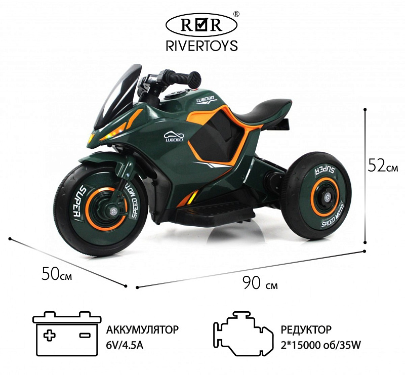 Детский электромотоцикл RiverToys X003XX представляет собой отличное развлечение для маленьких мотоциклистов. Модель оснащена яркими световыми и оригинальными звуковыми эффектами, что делает поездку еще более забавной и зрелищной.