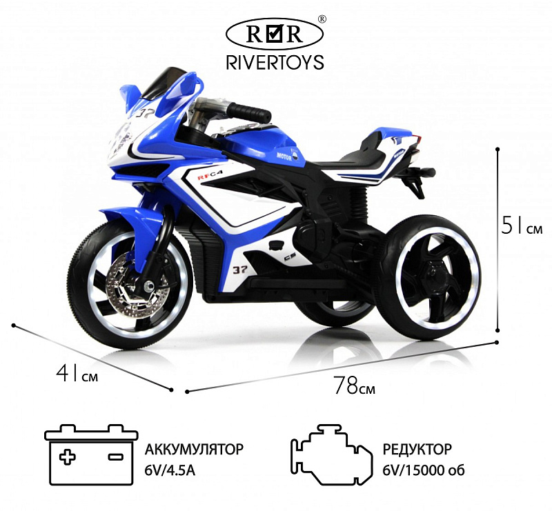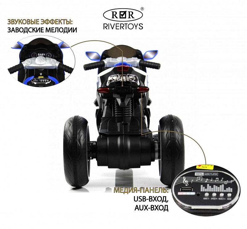 Детский электромотоцикл RiverToys K222AM синий