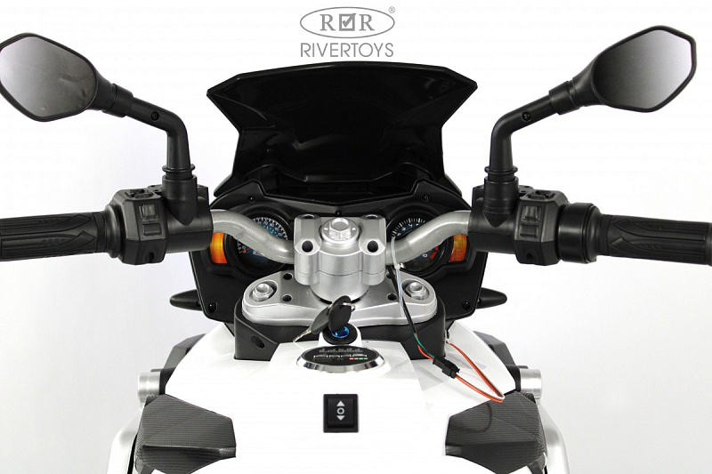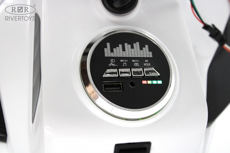 Мотоцикл заводится с помощью ключа, а управление осуществляется с помощью ручки газа и педали тормоза, что упрощает управление для маленьких райдеров. Встроенная медиа-панель имеет USB-вход, SD-вход и AUX для подключения внешних накопителей и воспроизведения музыки во время поездок. Также есть индикатор заряда батареи.