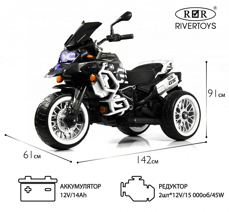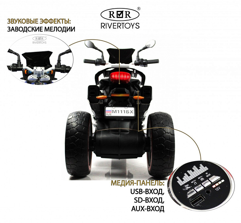 Детский электромотоцикл RiverToys М111БХ черный