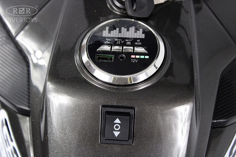 Мотоцикл заводится с помощью ключа, а управление осуществляется с помощью ручки газа и педали тормоза, что упрощает управление для маленьких райдеров. Встроенная медиа-панель имеет USB-вход, SD-вход и AUX для подключения внешних накопителей и воспроизведения музыки во время поездок. Также есть индикатор заряда батареи.