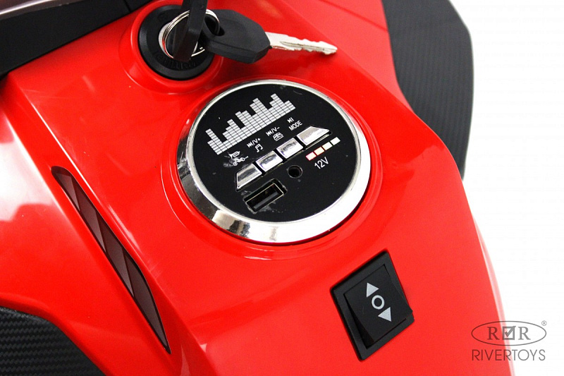 Мотоцикл заводится с помощью ключа, а управление осуществляется с помощью ручки газа и педали тормоза, что упрощает управление для маленьких райдеров. Встроенная медиа-панель имеет USB-вход, SD-вход и AUX для подключения внешних накопителей и воспроизведения музыки во время поездок. Также есть индикатор заряда батареи.