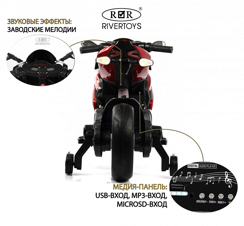 Детский электромотоцикл RiverToys X003XX красный глянец
