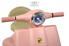 Детский электроскутер в стиле Веспа K444PX-А представлен в красивой линейке пастельных цветов, что выделяет модель на фоне других мотоциклов в нашем ассортименте. Необычные диодные огни, удобная медиа-панель с подключением к телефону по Bluetooh для прослушивания любимой музыки, все это сделает поездку более атмосферной. Скутер приводится в движение с помощью педали и управляется поворотным рулём. Корпус выполнен из ударопрочного пластика, вместе с этим, мотоцикл достаточно легкий и компактный, поэтому вам не составит труда его перемещать во время прогулок.