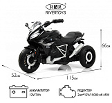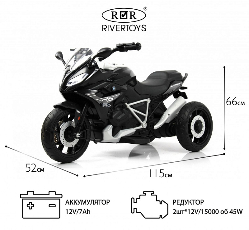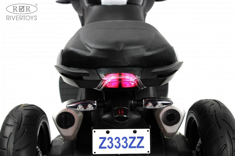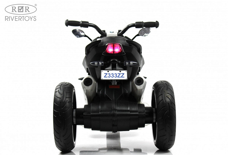 Функциональный и стильный электромотоцикл RiverToys Z333ZZ скопирован со спортивного байка. Он оснащен 3 резиновыми колесами, что делает его конструкцию устойчивую к опрокидыванию.