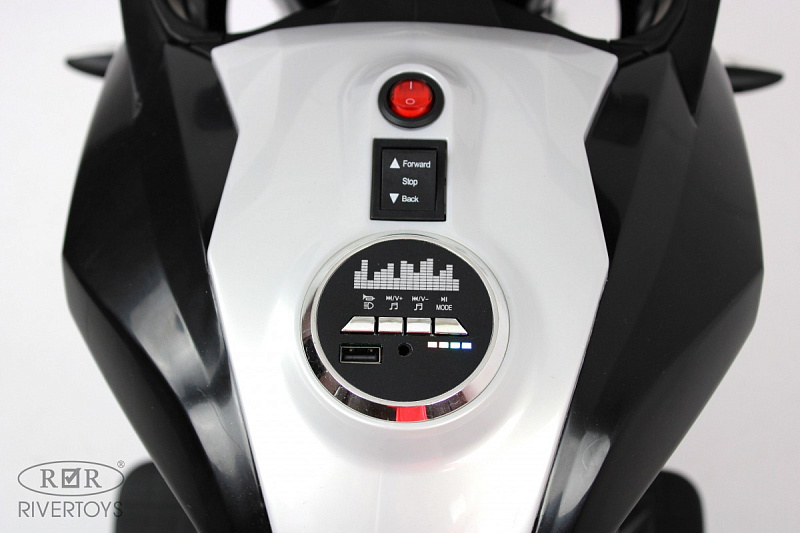 В этой модели есть подсветка передних и задних фар с режимом аварийной сигнализации, а также звук клаксона и стандартные мелодии. Медиа-панель поддерживает подключение внешних устройств по USB, AUX или Bluetooth для прослушивания любимых песен.