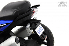 Функциональный и стильный электромотоцикл RiverToys Z333ZZ скопирован со спортивного байка. Он оснащен 3 резиновыми колесами, что делает его конструкцию устойчивую к опрокидыванию.