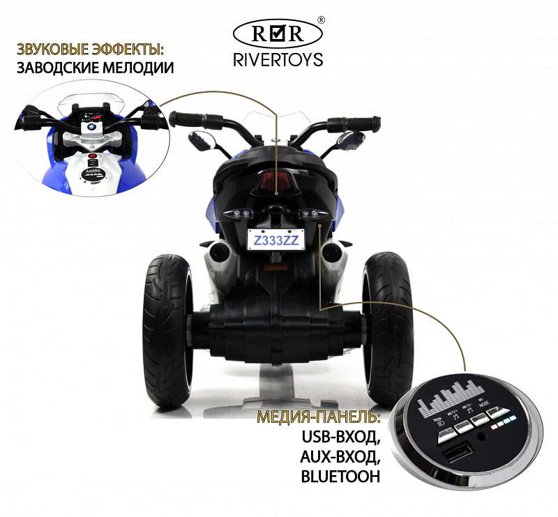 Детский электротрицикл RiverToys Z333ZZ синий