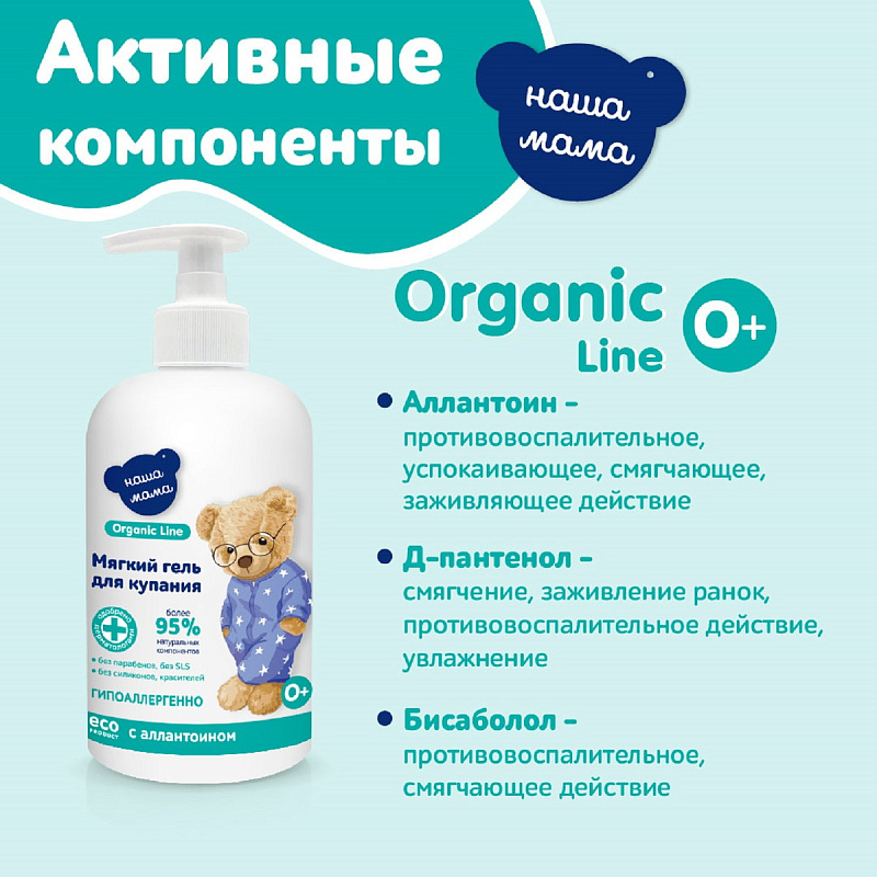 Детский гель для купания мягкого действия Наша мама Organic Line, 300 мл Д-3035