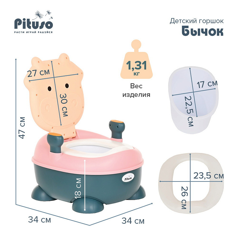 Детский горшок PITUSO БЫЧОК из безопасного пластика. Яркий привлекательный дизайн. Не имеет острых углов.
