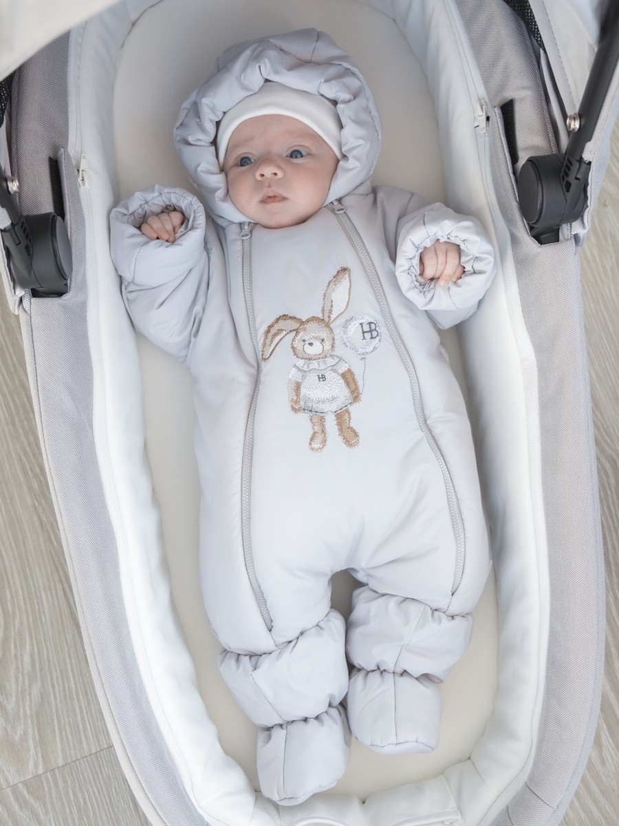Детский комбинезон НаследникЪ Выжанова с пинетками НВ005 светло-серый 56
