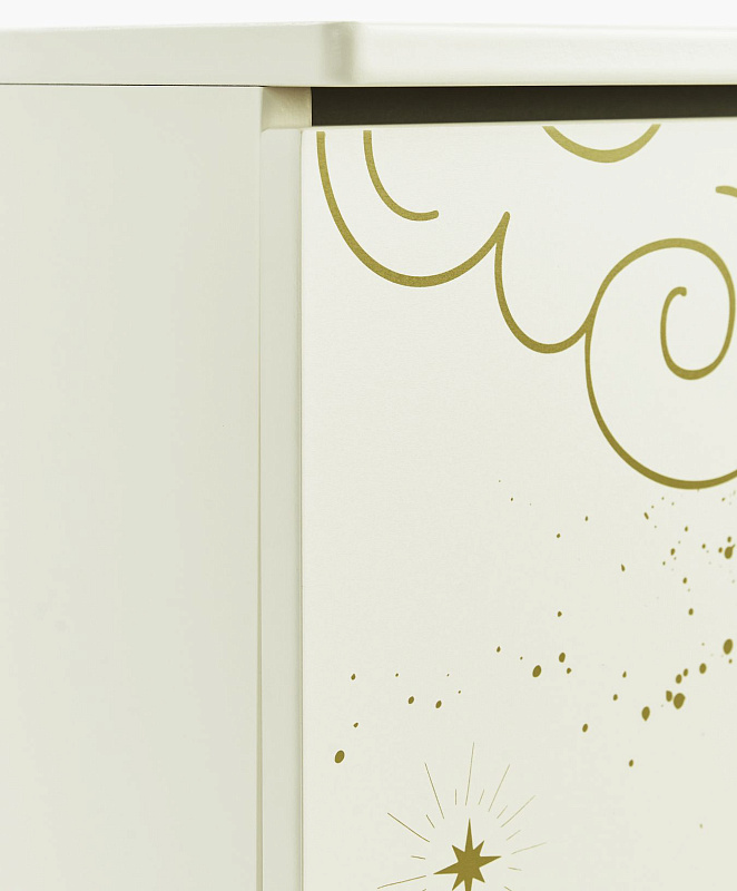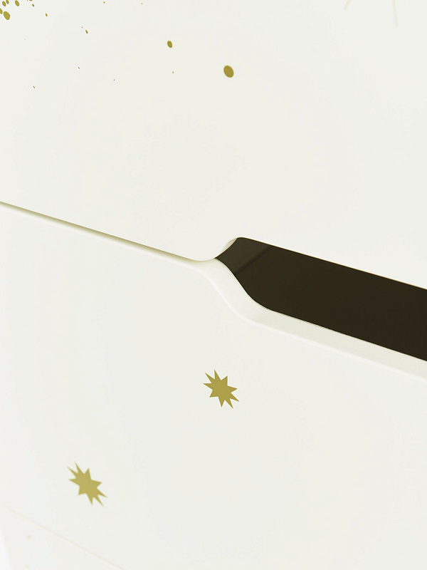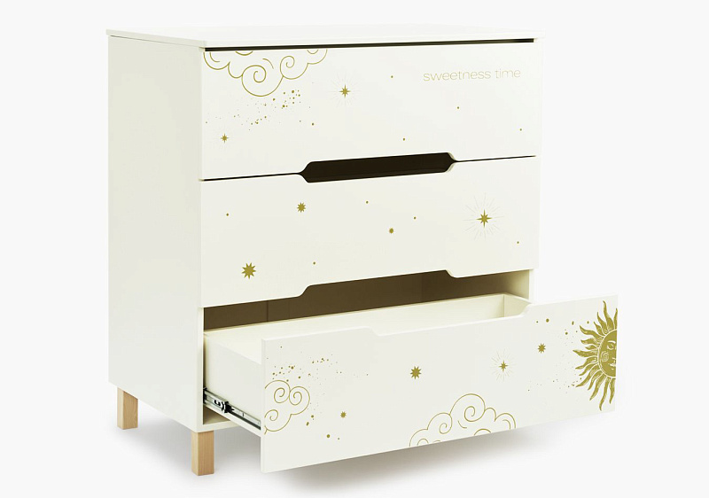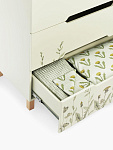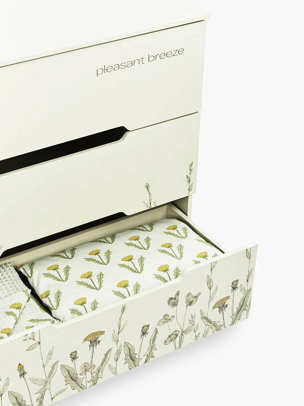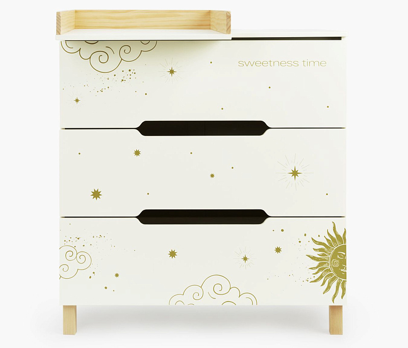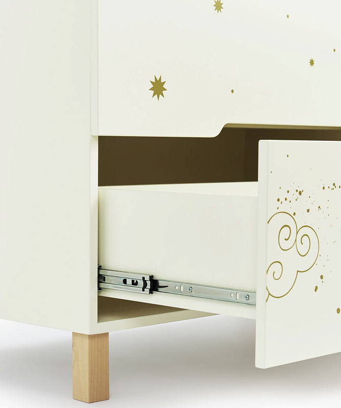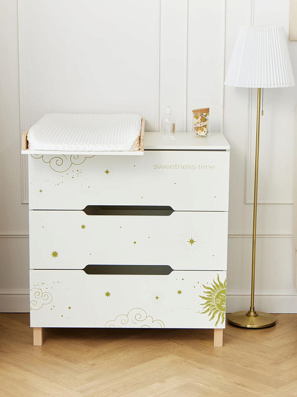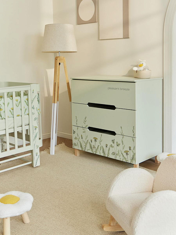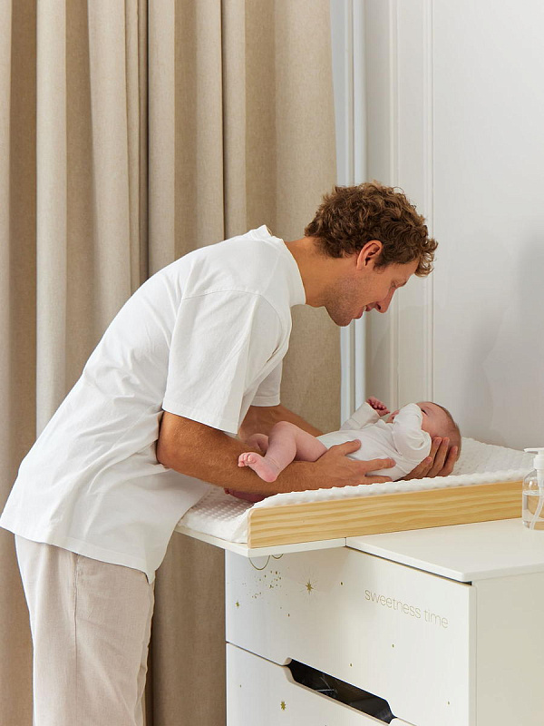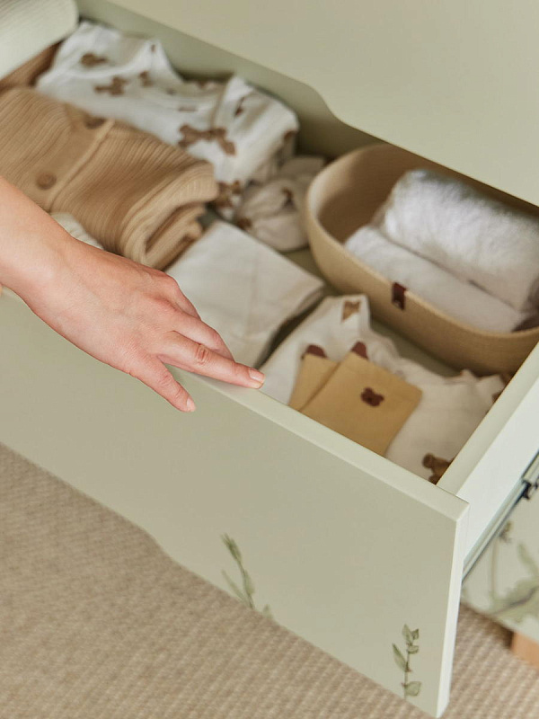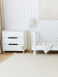 Fioki станет важной частью вашей детской комнаты. Просторные ящики обеспечат хранение всех необходимых вещей для малыша: средств по уходу, пелёнок, одежды и постельного белья. Ящики легко и бесшумно открываются, не нарушая сон ребёнка, а ножки из натурального дерева придают комоду дополнительную устойчивость. Съемный пеленальный столик делает уход за малышом еще проще и удобнее, а его бортики обеспечивают дополнительную безопасность.