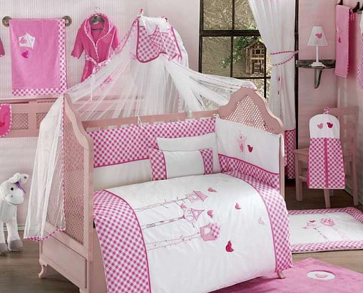 Детский комплект в кроватку Kidboo Lovely Birds 6 предметов Pink
