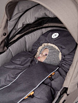 - имеет универсальные прорези для ремней безопасности как трехточечных , так и пятиточечных , именно поэтому подходит на любую коляску, автокресло и санки;