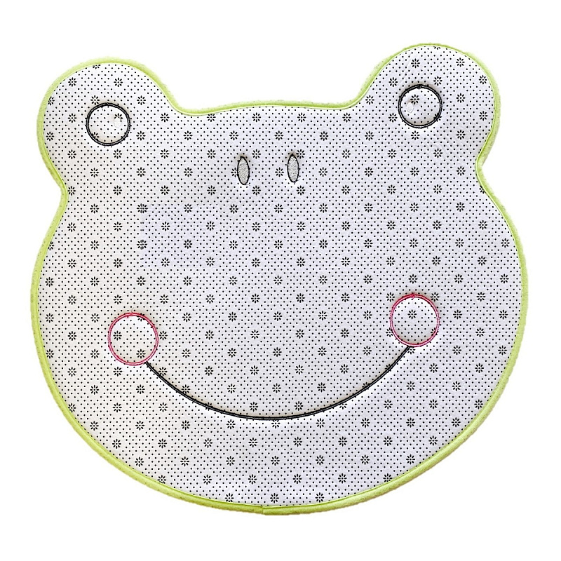 Невероятно нежный коврик в виде лягушонка нежно-зеленого цвета. Он станет настоящим украшением комнаты ребенка и сделает ее по-настоящему уютной. Мягкое покрытие, если провести рукой, то оно похоже на мягкий плюш, малышам на нем очень приятно валяться, ползать и играть. На этом коврике могут заниматься самые маленькие дети, на нем удобно и посидеть. На оборотной стороне имеется покрытие, которое, не скользит. Наш нежный ковер отлично подходит не только для развлечений, он станет лучшим помощником, его можно использовать и как коврик после купания. Размер коврика: 60*55см. Форма: Лягушонок