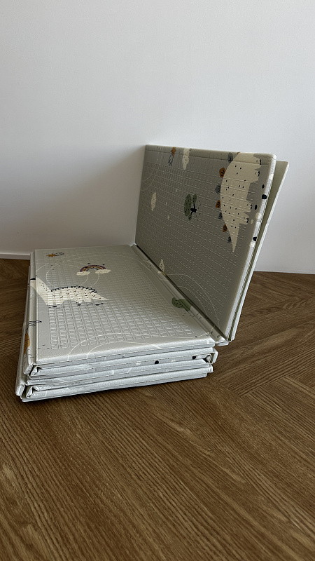 Разворачивается в большое, мягкое, теплое и уютное игровое место, а в сложенном виде компактно хранится в удобной сумочке, которая идет в комплекте.