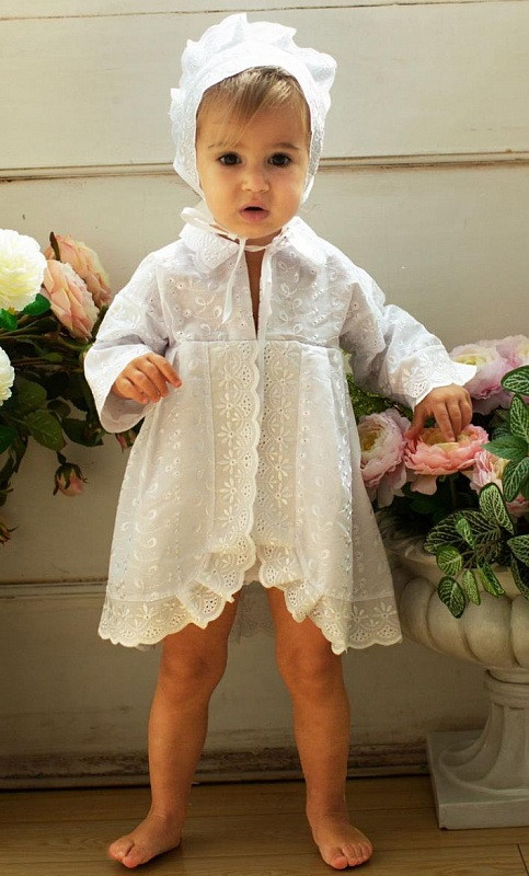 Для крещения ребенку нужна новая крестильная одежда, которую родители хранят как память о таинстве. Платье свободного кроя, без застежек и завязок, что позволит быстро одеть малыша. Чепчик с рюшами, на завязках. Торжественности модели придает вставка из рюш. Крещение - это таинство, которое дает невидимую защиту и заботу малышу. Совсем маленькие дети гораздо спокойнее ведут себя на крещении и не пугаются, когда их на руки берет кто-то чужой (крестные или священник).