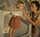 Кровать весит всего 12 кг и легко перемещается по квартире, за счет двух колесиком. Для путешествий кровать очень компактно складывается в дорожную сумку.