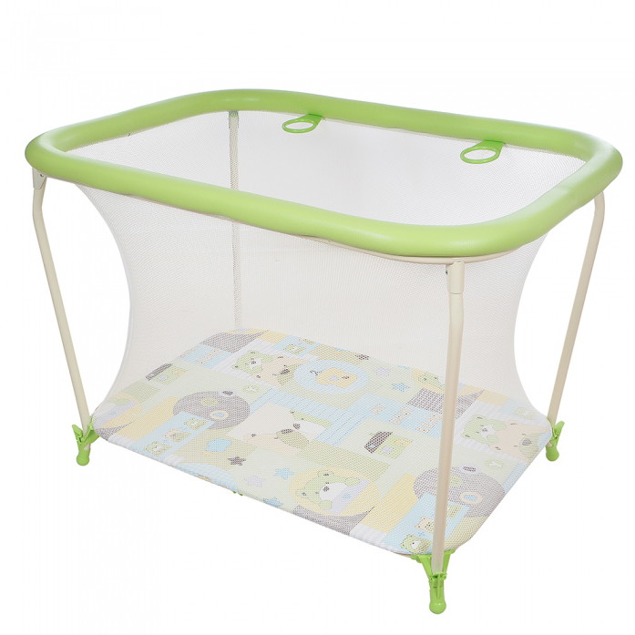 - Манеж оснащен 4 ручками – кольцами, помогающими ребенку вставать на ноги.